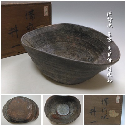 - 【T-345】備前焼 花器 共箱付 茶道具 時代物