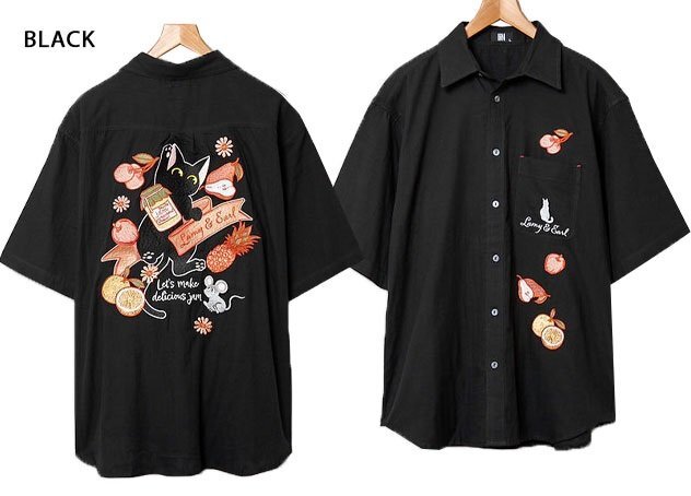 - ラミ&アール 美味しいジャムを作ろう半袖シャツ◆LIN ブラック Mサイズ AL-75772 黒猫 ネコ ネズミ ユニセックス