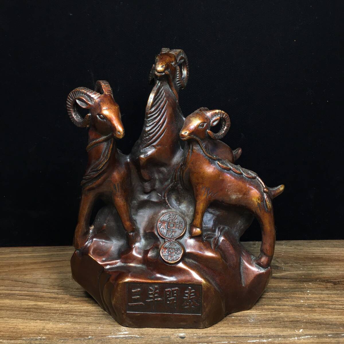- 友人館蔵 古銅彫 三羊開泰 招財 文案置物 珍蔵品 極細工 古賞物 古美味 東洋彫刻 時代物 骨董 中国古美術