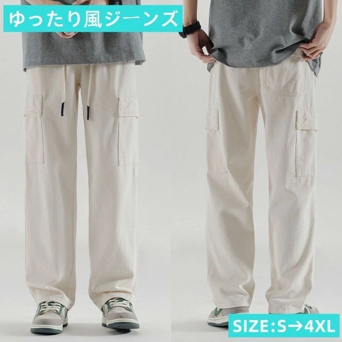 > ジーンズ ゆったり風 デニムパンツ コットン100% ジーパン ワイドルーズ ボトム メンズパンツ 白 ホワイト Zty-5532-1 3XL