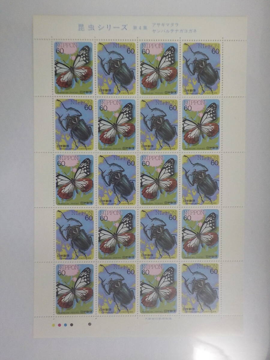 - 昆虫シリーズ 第4集 アサギマダラ ヤンバルテナガコガネ / 60円切手シート 未使用