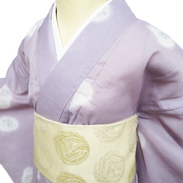 > 夏物 小紋 着物 中古 ポリエステル カジュアル 丸紋 花模様 暈し 薄色 多色 身丈161cm 裄66.5cm M きもの北條 A1177-10