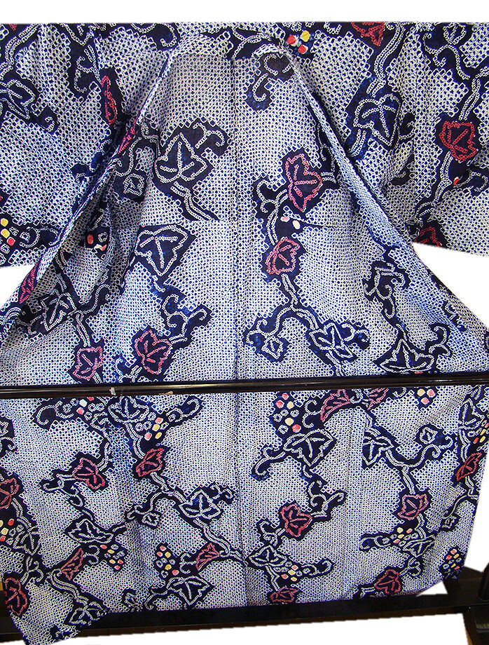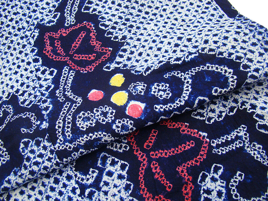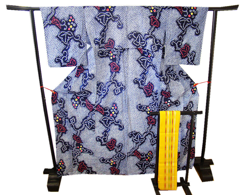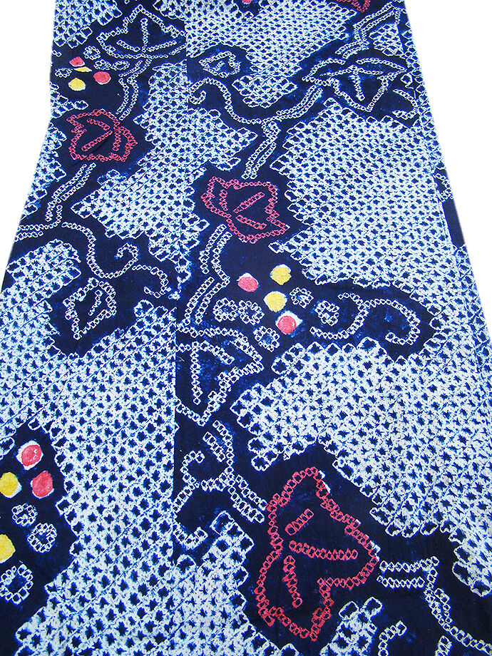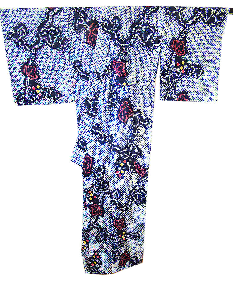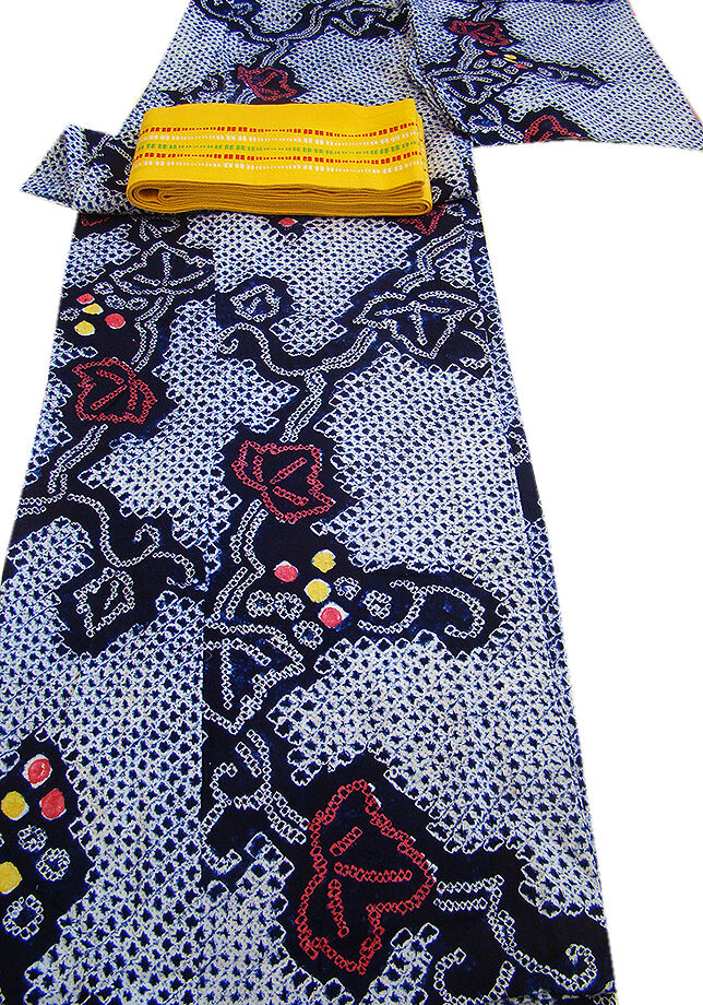 - きものしらゆり 夏物 伝統工芸 濃紺色 蔦 有松鳴海総絞り 浴衣 綿 四寸帯 セット 身長151cm~158cmの方に最適 B004