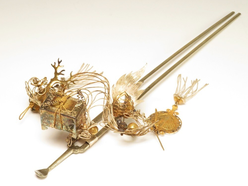 - 【9683】和装小物 明治 大正 昭和 玉手箱 亀 彫金 簪 (初品・買取品)