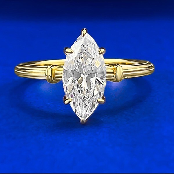 - 最初の入札者様は開始価格で購入できます。女性用 18K ゴールドメッキ 925 スターリングシルバーラボダイヤモンドリング、 6*12mm _Kn
