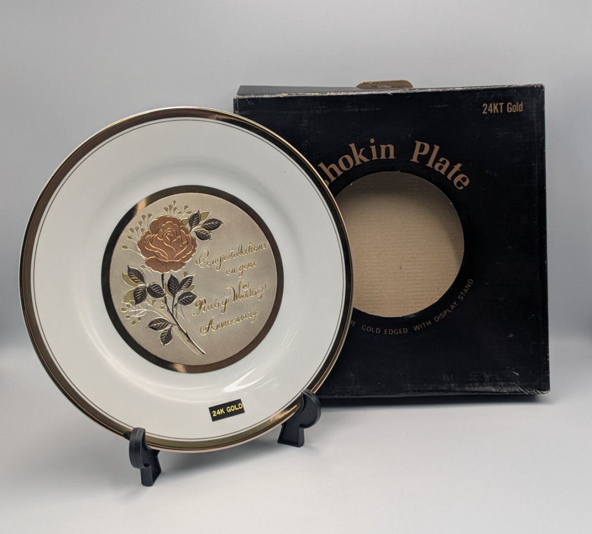 - THE ART OF CHOKIN 彫金皿 飾り皿 ルビー婚式 24KT ゴールド
