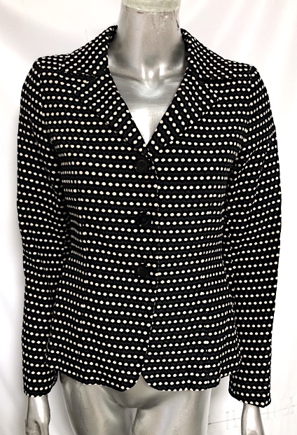 > ☆二点落札で送料無料! M6 美品【最高級白タグ】Max Mara 伊製 ドット柄 シルク混 テーラードジャケット 黒白 40 M相当 セレモニー モード