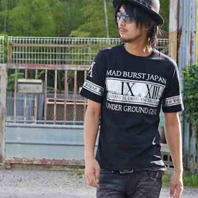 - BURSST JAPANナイン&サーティーンプリントデザイン 半袖Tシャツ オラオラ 70739 新品 ブラックシルバー XL