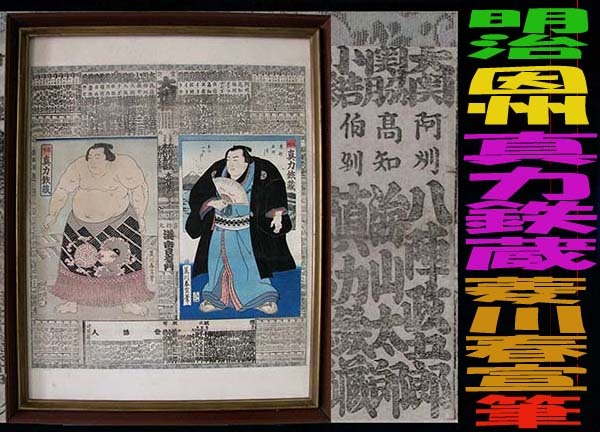 - ★☆本物保証* 菱川春宣.筆【 因州力士.真力鉄蔵 】木版画・明治16年8月番付表*掛け軸を額装に直しています・額装.箱無★