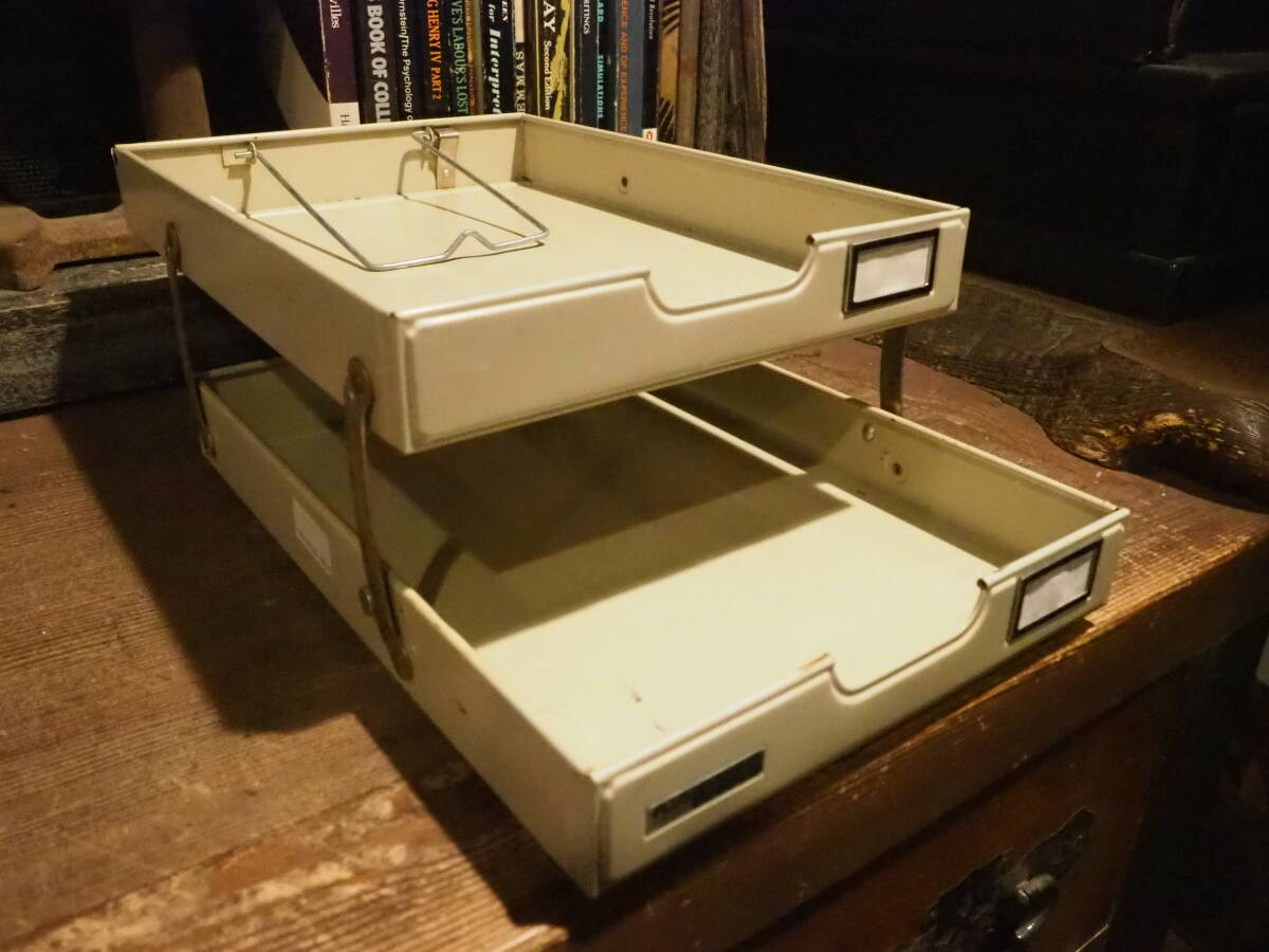- 【2段事務用スチールラックA】昭和アイアン引出し書棚収納ケースおもちゃ箱筆記用具文具古道具アンティークインテリア骨董デスク卓上机