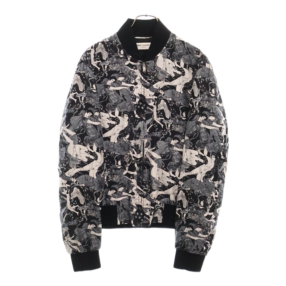 - サンローランパリ PRINTED SILK BOMBER JACKET 総柄 プリンテッド シルク ボンバージャケット ブラック/ホワイト 505991 Y356S