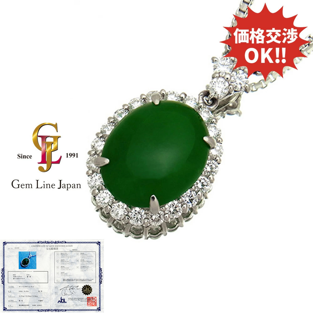 - 大粒ヒスイ 8.45ct 上質ダイヤ 1.25ct Pt/K18WG プチネックレス