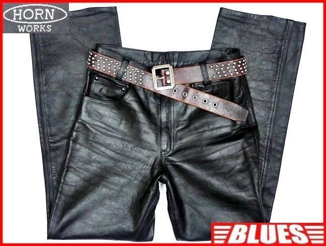 > 即決★HORN WORKS★W30 レザーパンツ ホーンワークス メンズ 黒 本革 ライダースパンツ 本皮 パンクロック ライディング ツーリング