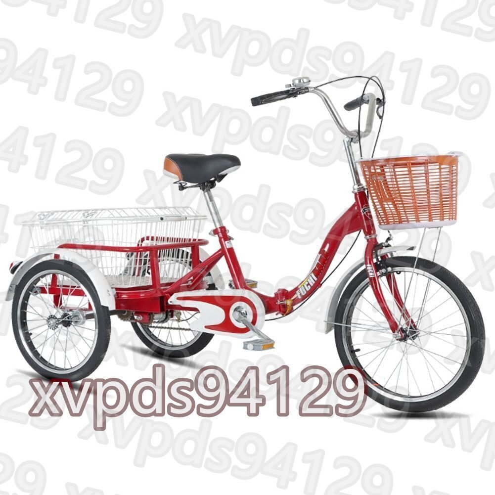 - 折りたたみ三輪車 3輪クルーザー自転車 大人の三輪車高齢者用自転車 20インチ3輪自転車 クルーザー、デュアルブレーキ、折り畳み式