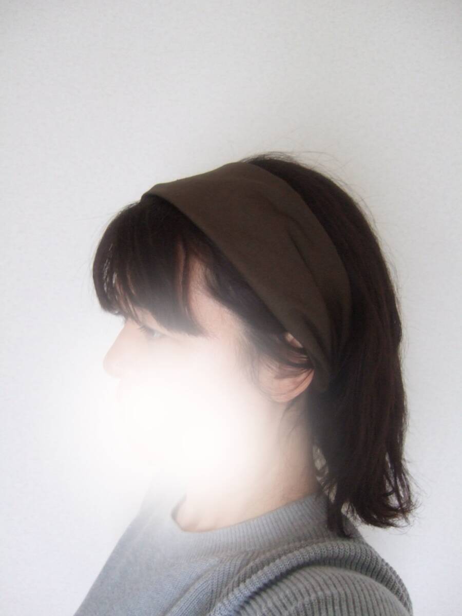 - ★即決★ハンドメイド しっとり艶感がお勧め ほぼリネン(コットンリネン)ダークカーキ ゆるターバン *ヘアバンド 仕事にも