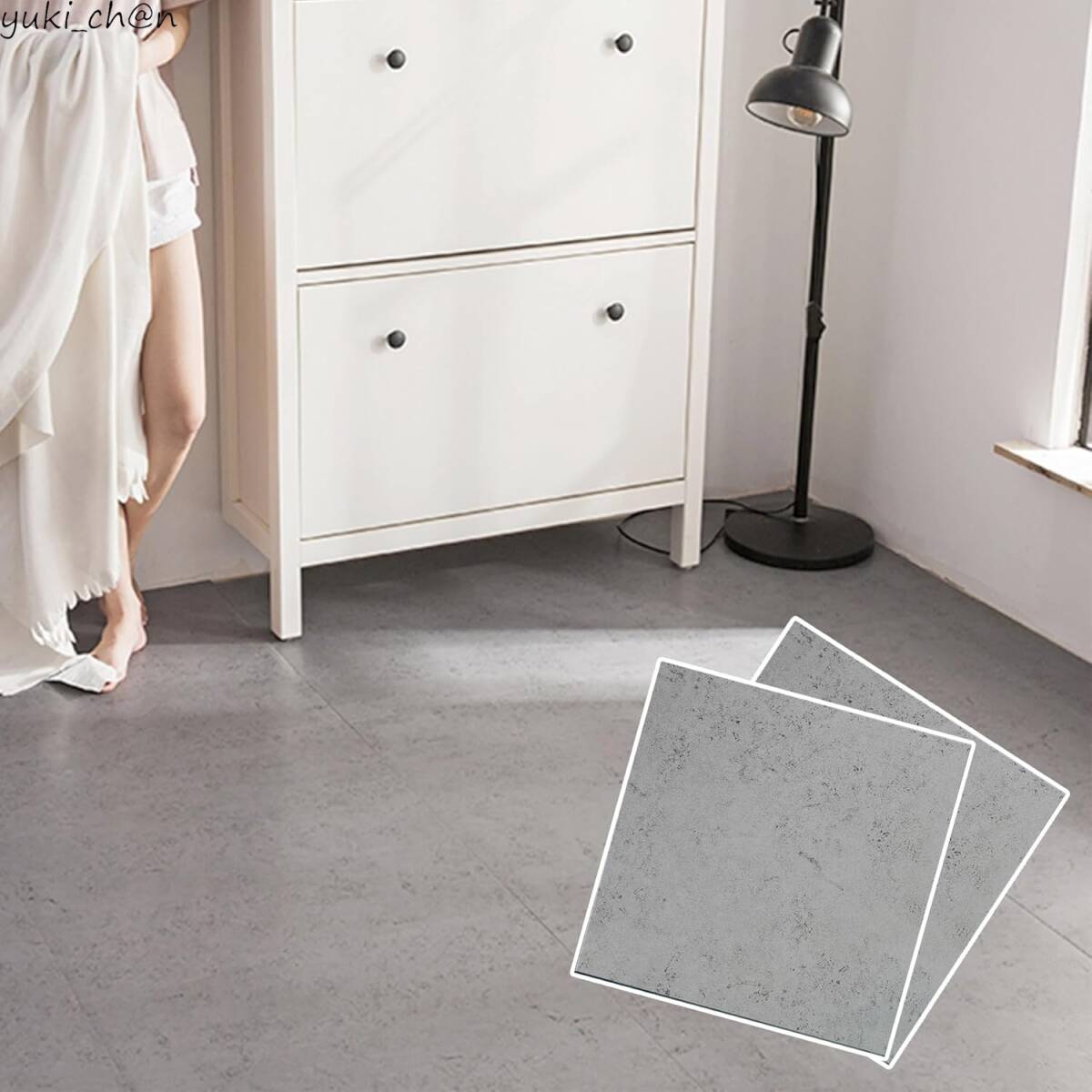 - フロアタイル セメント 42枚 フローリングシート 四角形 リノベーション 接着剤不要 貼ってはがせる 粘着シート 厚手 防水 抗菌