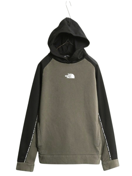 - ノースフェイス プリント スウェット ジャージ 切替 フード パーカー キッズ XL メンズ S 程 アウトドア トレーナー プルオーバー ツートン