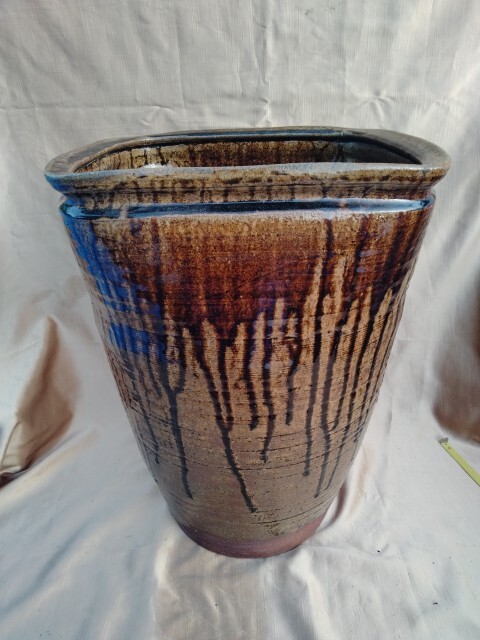 - 高取焼 笹山登古 壺 瓶 鉢 広口 底20口29/31高44cm
