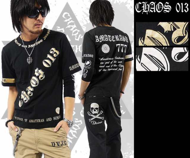 > 1円スタート CHAOS JAPAN ICEプリント元腕サイドバック 半袖Tシャツ ch-ry-2003新品 ブラックxゴールド M