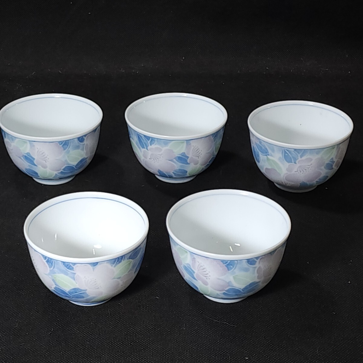 - 光峰 作 紫の花 湯呑 5客 未使用 /和食器/陶磁器/