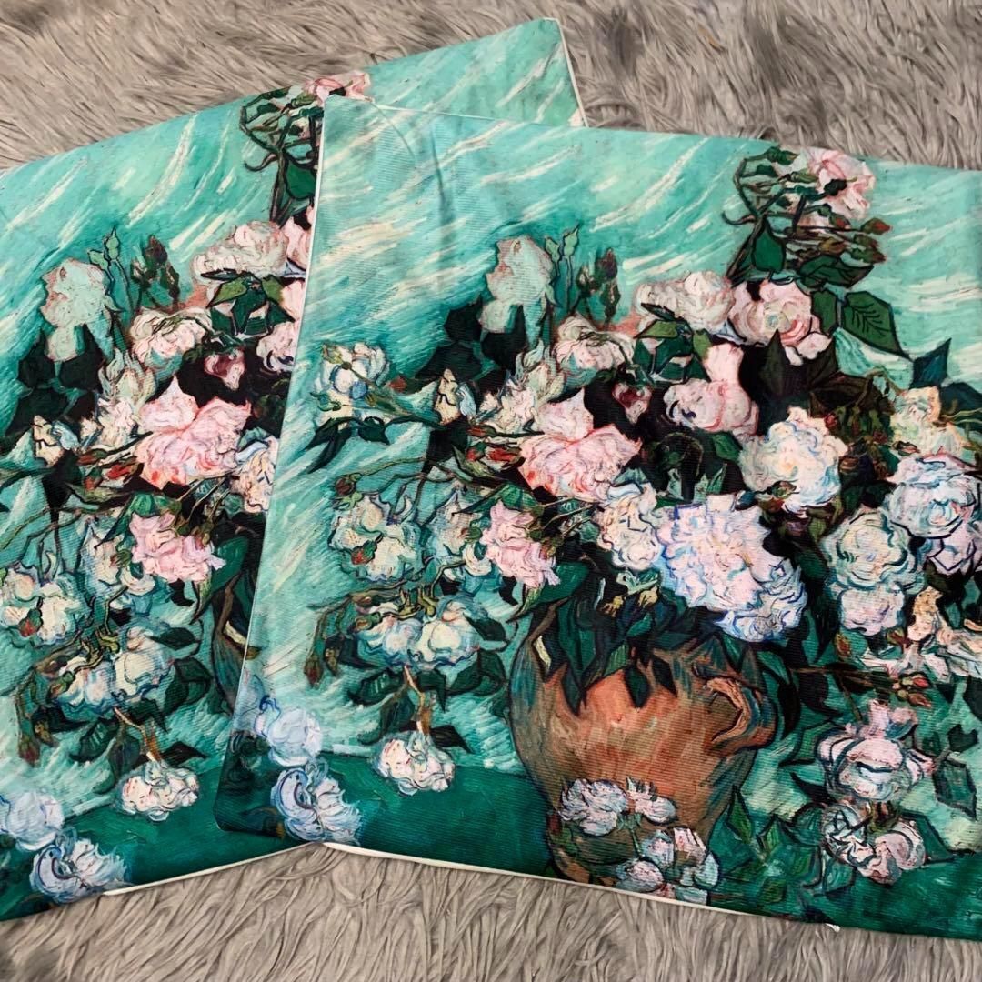 - 2枚セット【 ゴッホ バラのある花瓶】 クッションカバー 枕カバー インテリア
