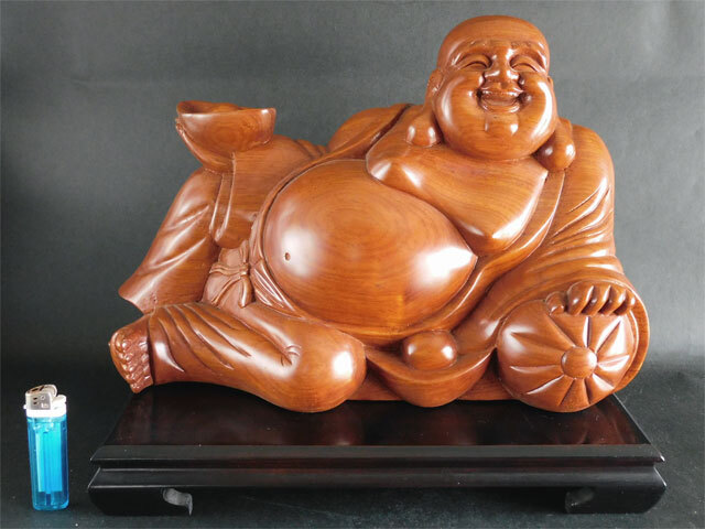 - 天然木 木彫り 布袋 置物 元宝 金運