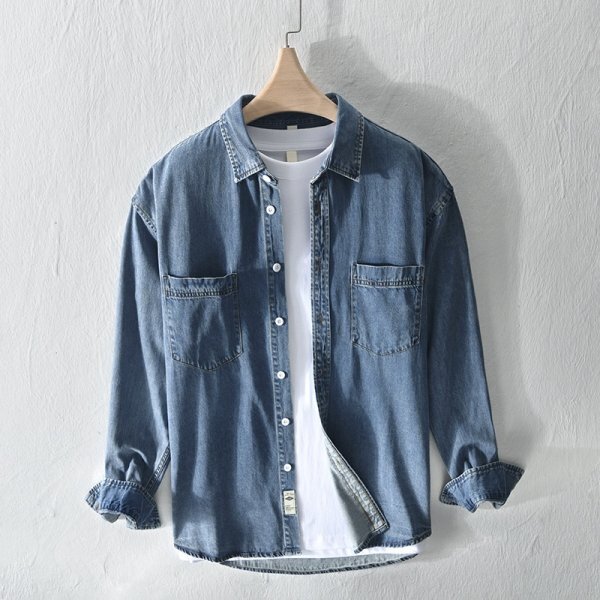 - 新品★未使用 長袖シャツ 長袖デニムシャツ メンズ トップス カーゴシャツ ウエスタン トレンド カジュアル【z722】ダークブルー 2XL