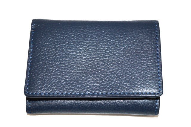 - 新品 ♪★ モノコムサ MONO COMME CA 3つ折り 財布 紺 黄色 コンパクト ミニ財布 本革 レザー ネイビー イエロー 折り畳み ★ 23703