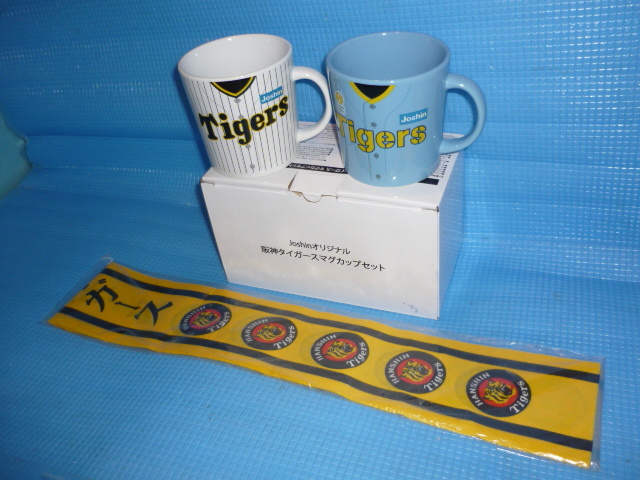 > b★未使用・非売品★Joshinオリジナル「阪神タイガースマグカップセット」とたすき?