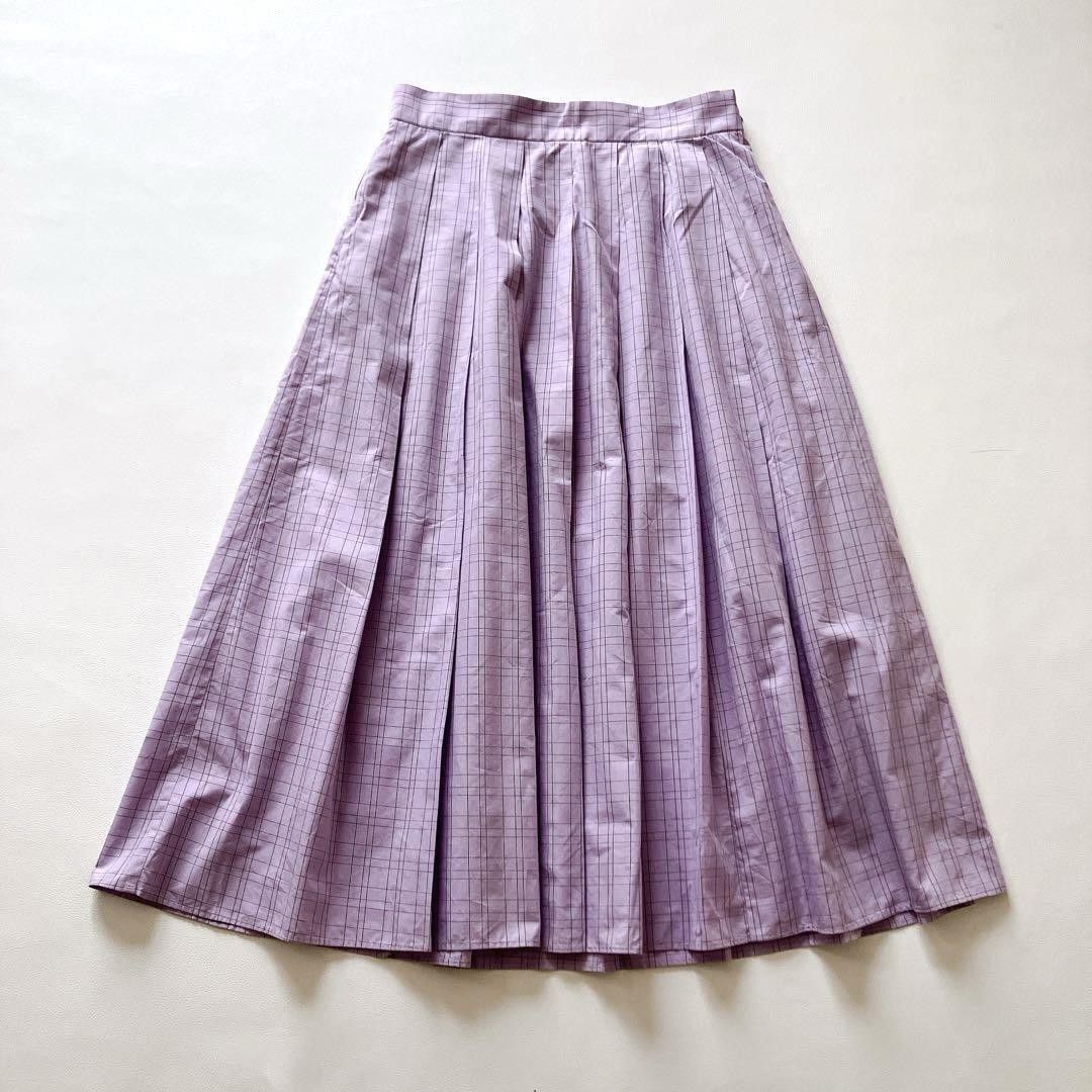 - UNTITLED アンタイトル ロング スカート ボリューム タック パープル チェック 44 XXL 大きいサイズ ラベンダー