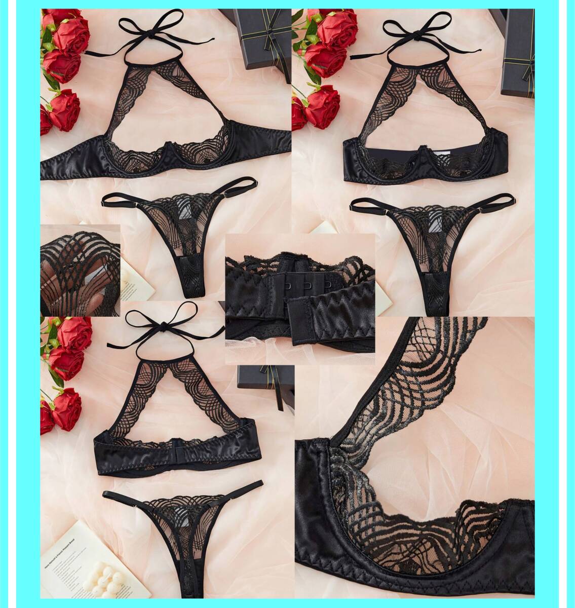 > ★超素敵★アンダーワイヤー★ランジェリーセット★ハーフカップ★レースカップ★大人可愛い★ネックリングデザイン★シースルー★L95