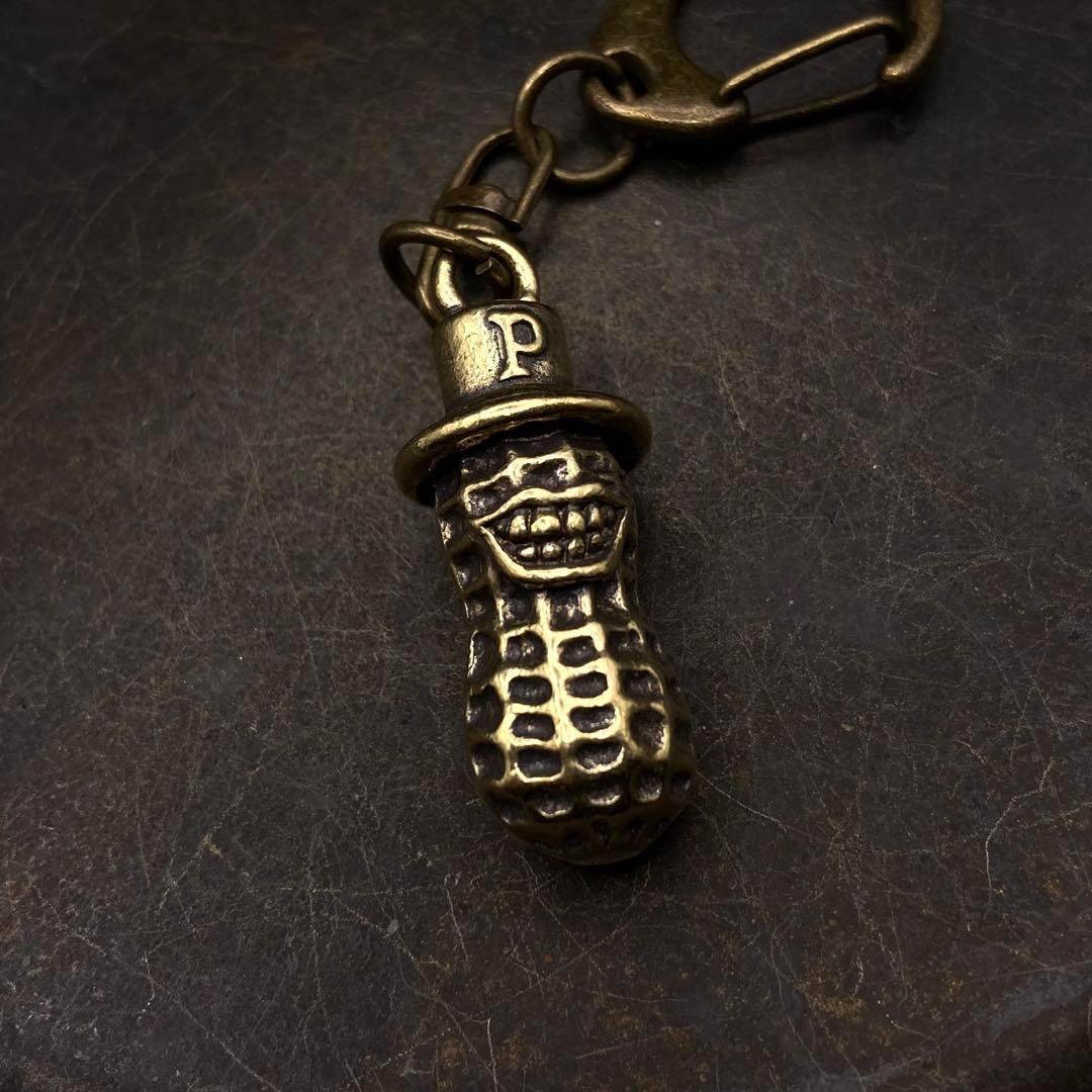 > 179 真鍮 キーホルダー ピーナッツ 顔 ビンテージ 金運 開運 レトロ アンティーク 真鍮製 チャーム アクセサリー パーツ ハンドメイド