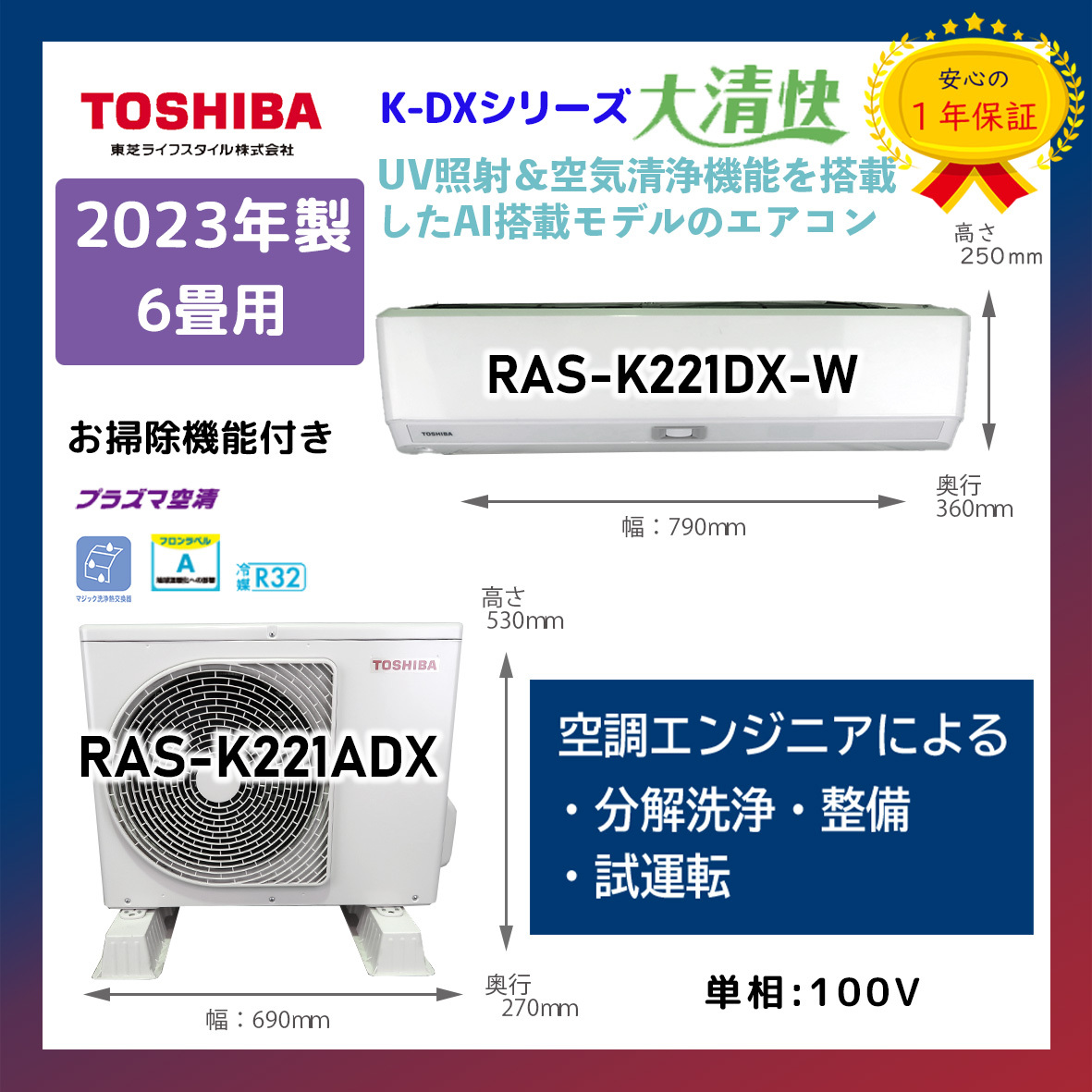- 保証付!東芝☆2023年製ルームエアコン☆6畳☆T38
