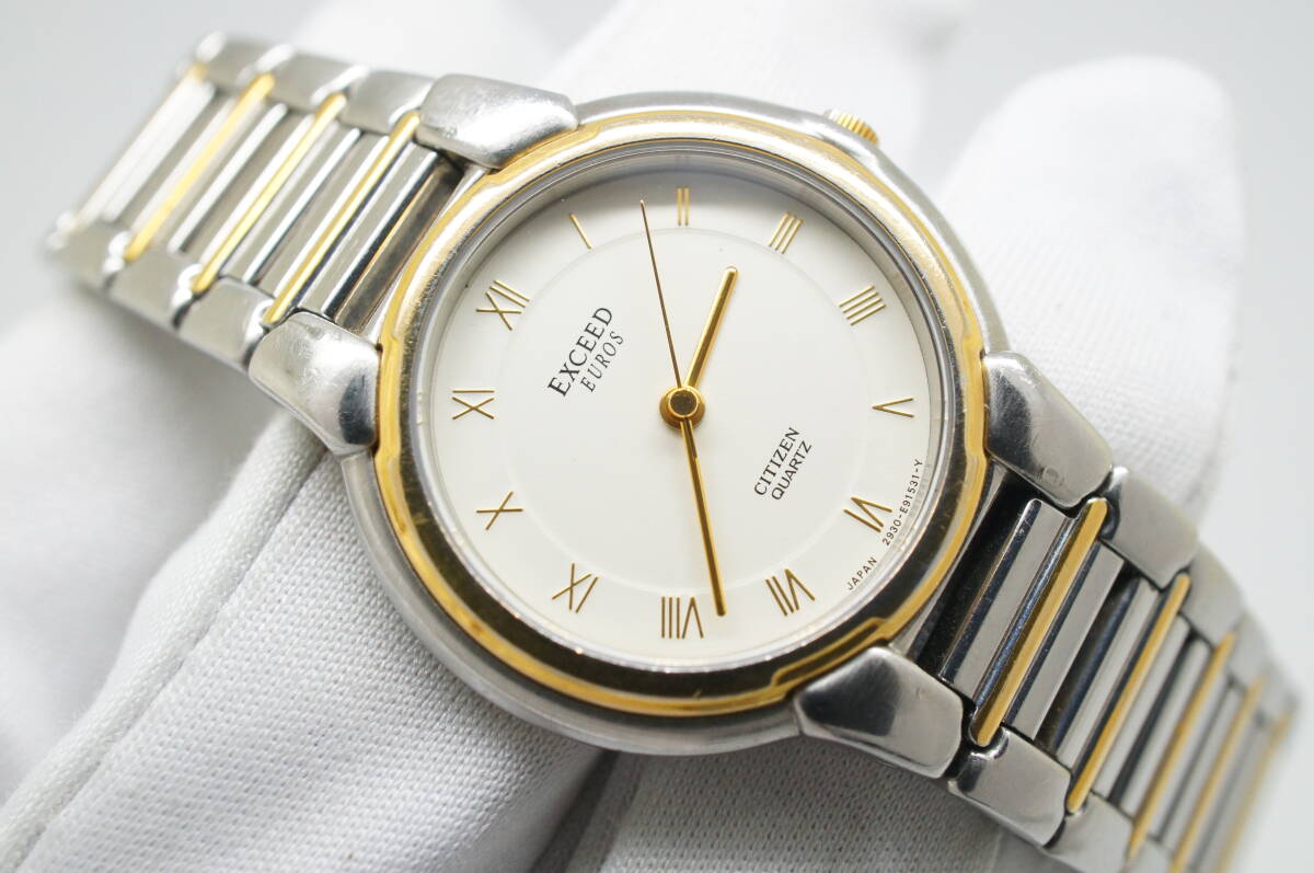 - D97●作動良好 CITIZEN シチズン EXCEED エクシード 2930-296818 アイボリー文字盤 ローマン数字 レディース腕時計 コンビ お洒落 クォーツ