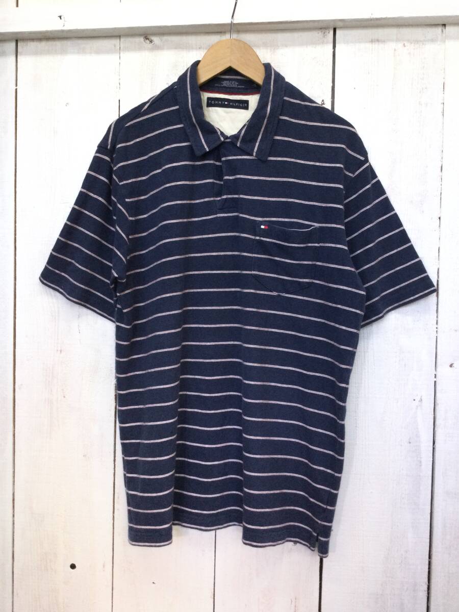 - TOMMY HILFIGER トミーヒルフィガー コットン半袖ポロシャツ ボーダー 胸ロゴ メンズL 良品綺麗