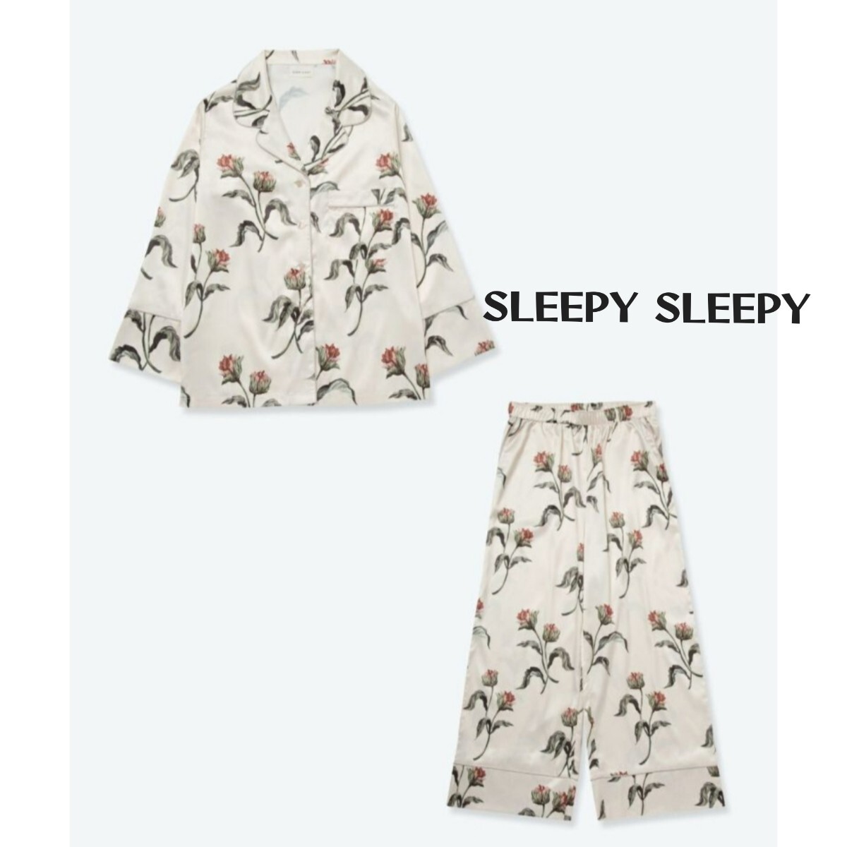 - 未使用*SLEEPY SLEEPY*サテンフラワーパジャマ/長袖ロングパンツ*サテン生地*花柄*アイボリー*レディース*17000円*現行品
