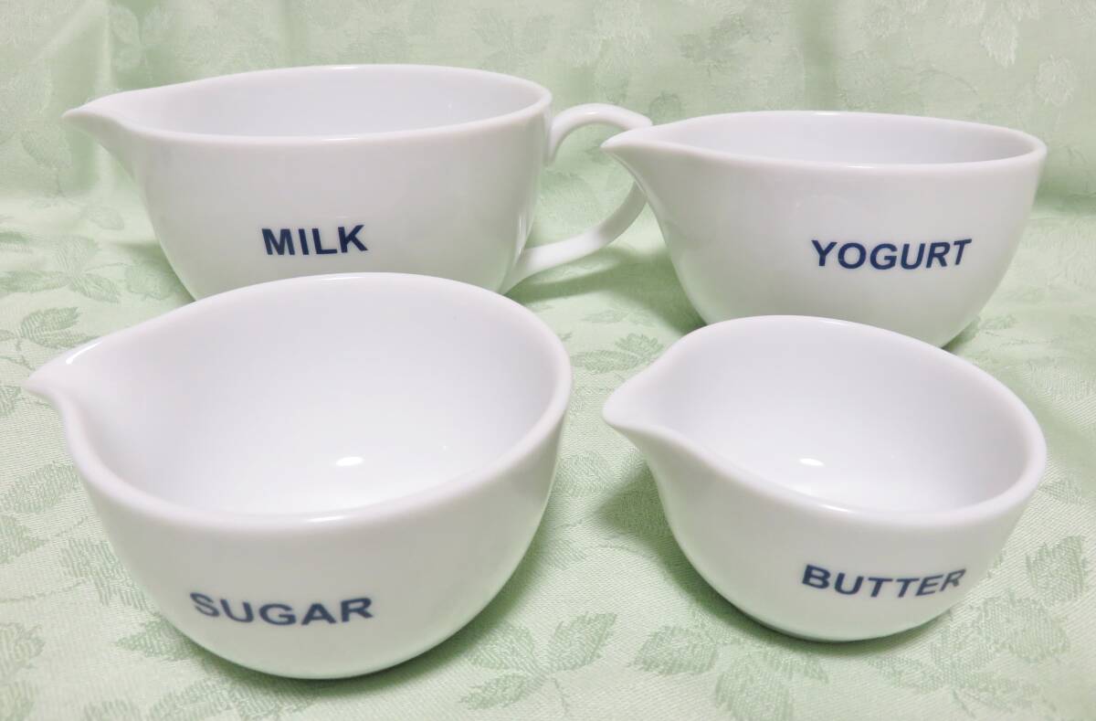 - 未使用 栗原はるみ 片口 メジャー カップ SS/S/M/L 4個セット 入れ子 コンパクト収納 卵焼き タレ ソース つゆ 調味料 食器 ゆとりの空間