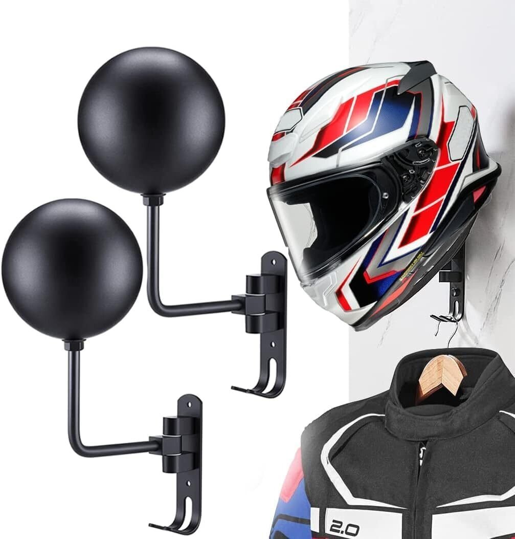 > ヘルメットハンガー バイクヘルメットマウント 180度回転可 ヘルメットラック ヘルメット ホルダー フック付き2個セット