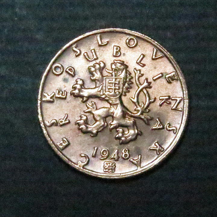 - チェコスロバキア 1948年 盾を持つチェコのライオン 50ハレル硬貨 g5174