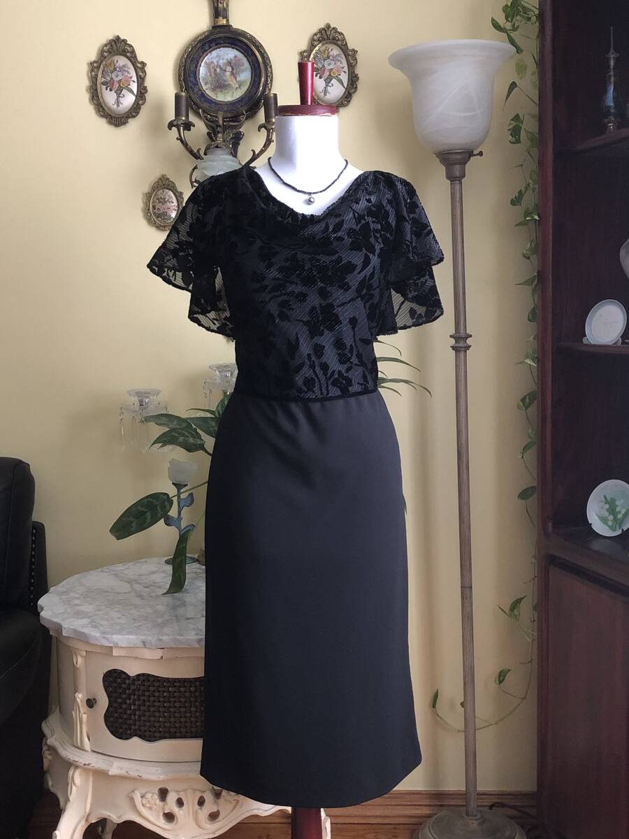 - 新品【ラルフローレン】ラメ入りベルベット花織り柄/ドレープケープ襟/黒ストレッチ/カクテルドレス (US・2/9号)#593