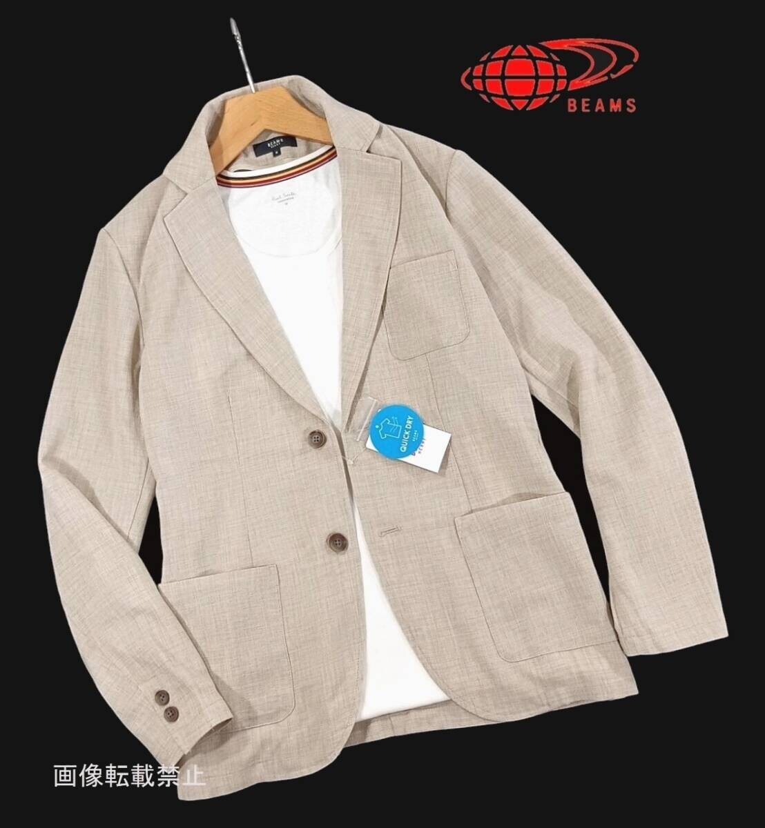 > 新品 ビームス 薄手 リネンライク サマージャケット XL ライト ベージュ テーラードジャケット ドライタッチ 麻調 BEAMS HEART メンズ
