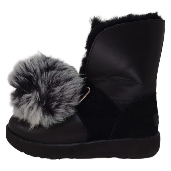 > アグ UGG ショートブーツ 24 N1018605 アイズリー レザー、ムートン 黒×ライトグレー レディース WATERPROOF 靴