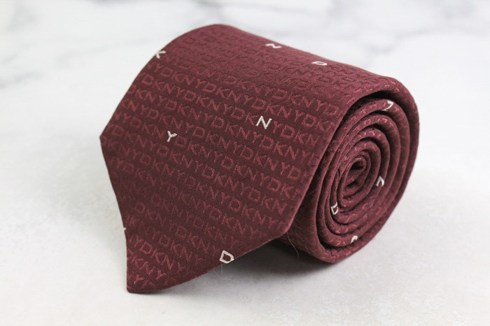 - ダナキャラン ブランド ネクタイ ロゴ 総柄 小紋柄 シルク イタリア製 PO メンズ ワインレッド DKNY