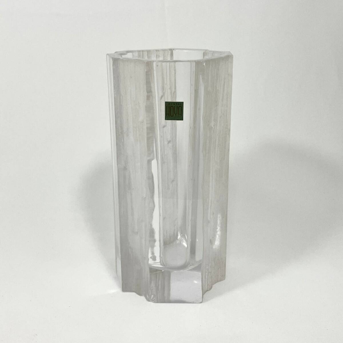 - ホヤ HOYA クリスタル フラワーベース 高さ23cm クリア×フロスト ガラス 花瓶 置き物