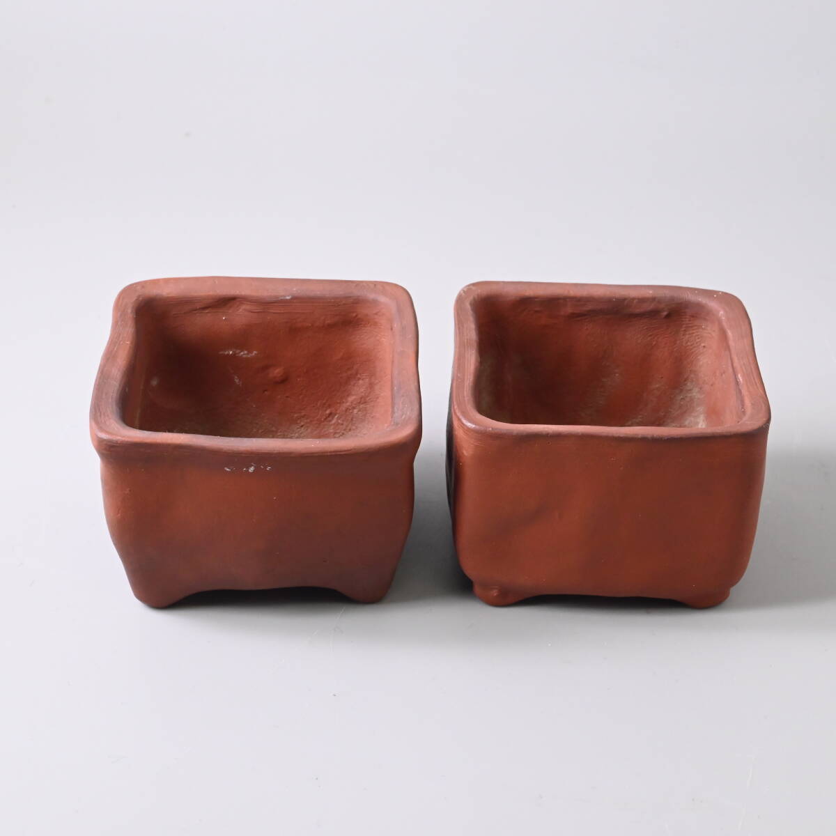- N6905 小品盆栽鉢 豆鉢 在銘 一陶園 ペア 径50mm 高35mm ミニ盆栽