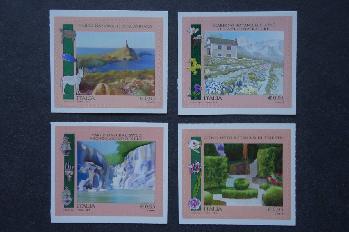 - 外国切手: イタリア切手 「イタリアの公園、庭園、植物園」(アシナーラ国立公園 ほか)4種完 未使用