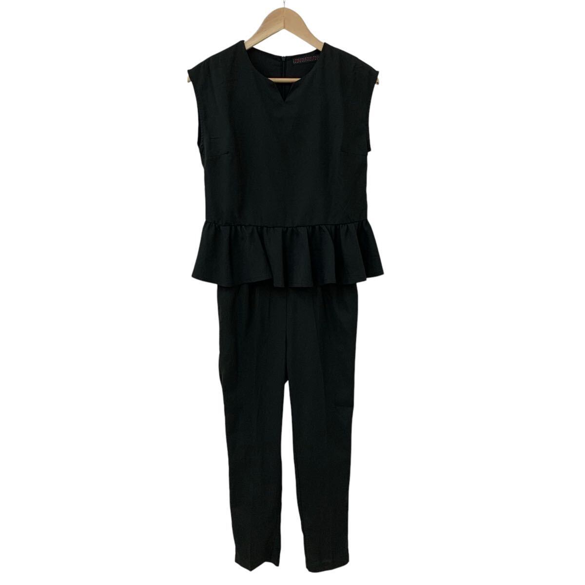 - B450-54 SENSE OF PLACE センスオブプレイス オールインワ つなぎ ノースリーブ ペプラム ブラック 黒 レディース Free