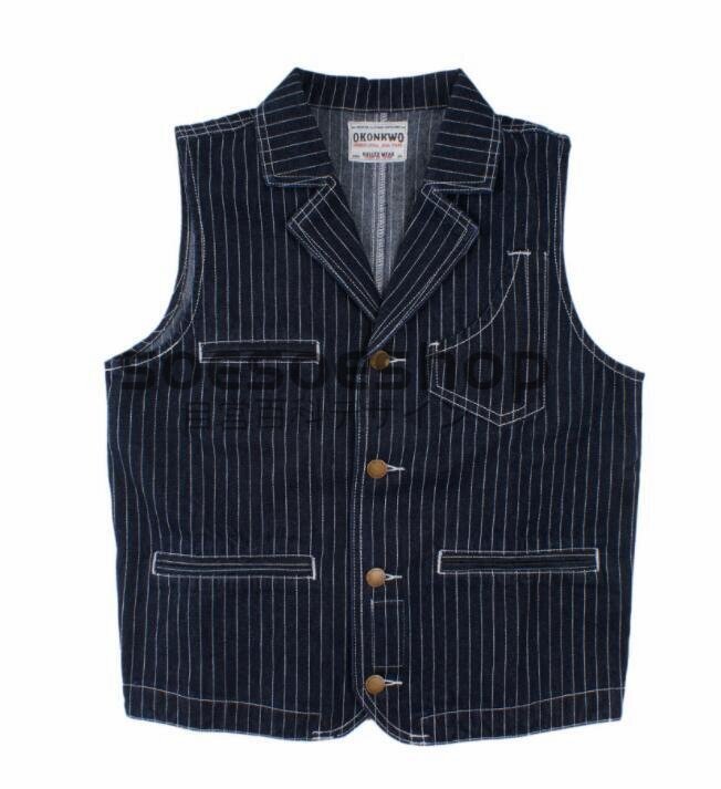 - Tシャツとの相性も良いヴィンテージ復刻モデル ピンストライプデニム ワーク メンズベストジーンズ バイクアメカジ Sサイズ