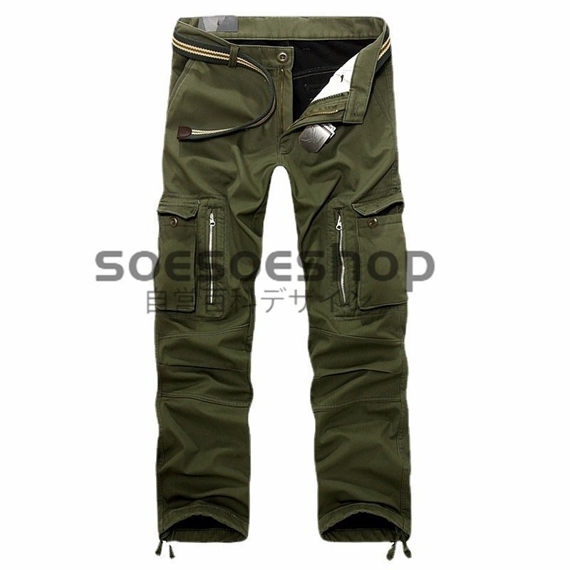 - 秋冬パンツ メンズ ワークパンツ 無地 厚手 裏起毛 カーゴパンツ チノパン ポケット多い ミリタリー ペインターパンツ 28~40選択 オリーブ