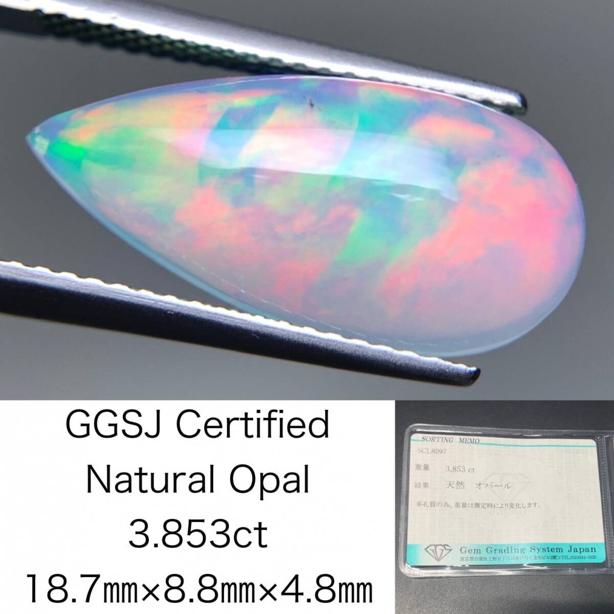 - オパール 3.853ct 宝石ソーティング付き 18.7×8.8×4.8 天然 ルース( 裸石 ) 4554Y
